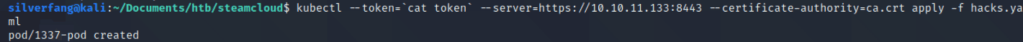 And we got what we need! Created a token and ca.crt file for each of these along with a malicious container file named hacks.yaml.